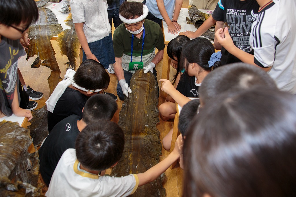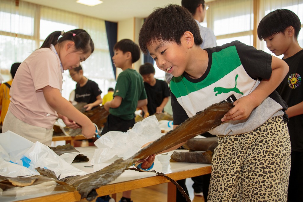 昆布がこんなに大きいものだったと知る子どもたちの目は驚きと好奇心にあふれている