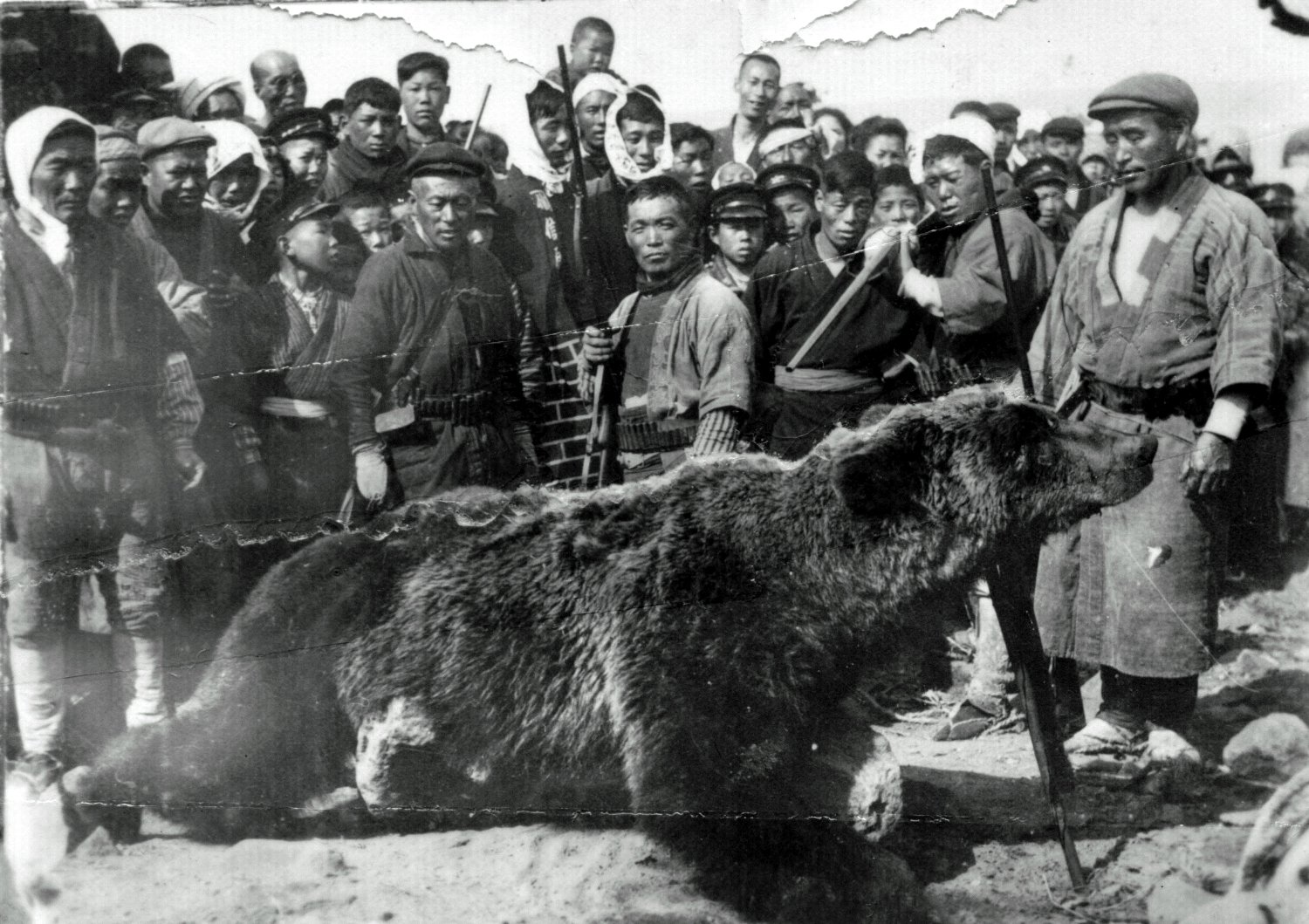 三代目寺嶋豊次郎写真技師が撮ったヒグマ捕獲写真