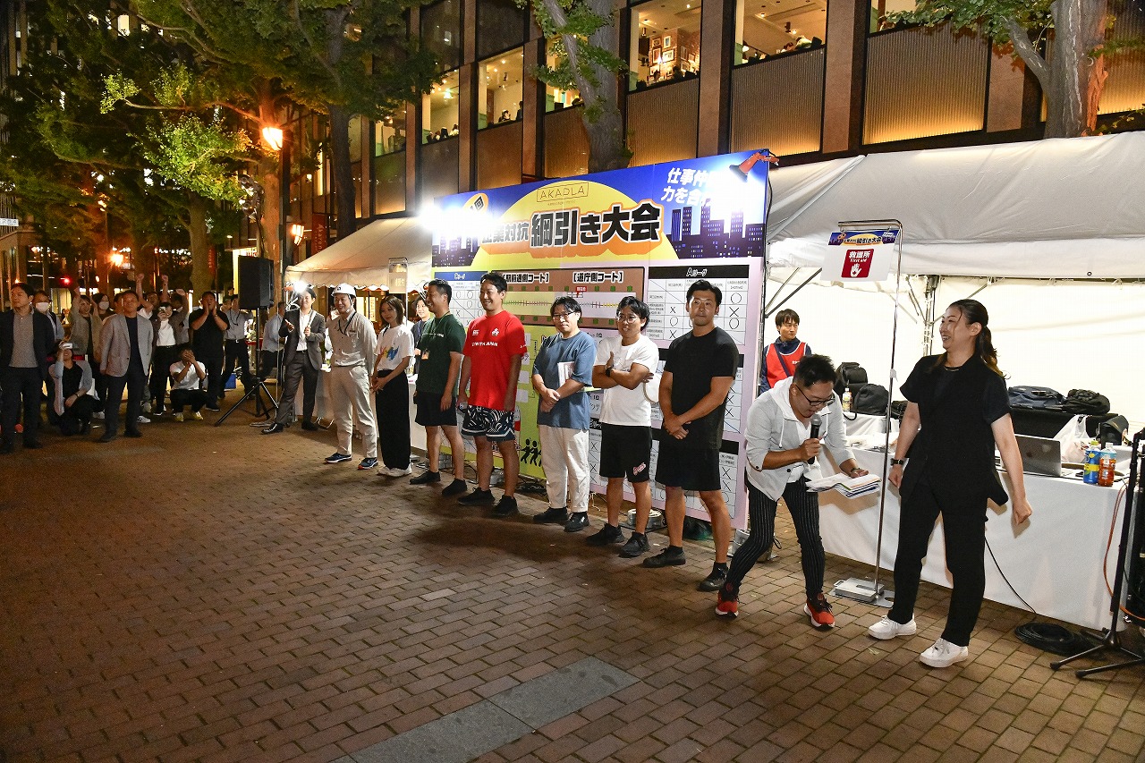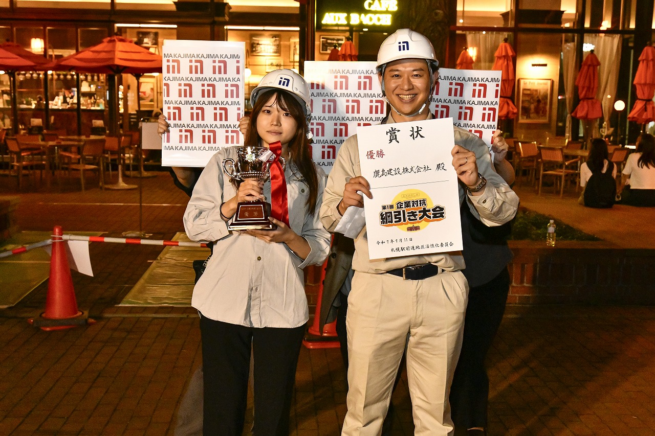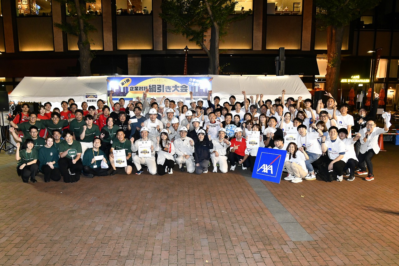 さて、栄えある第1回「アカプラ企業対抗綱引き大会」の優勝は鹿島建設株式会社。準優勝が株式会社北洋銀行、3位はシービーアールイー株式会社とアクサ生命保険株式会社となりました。