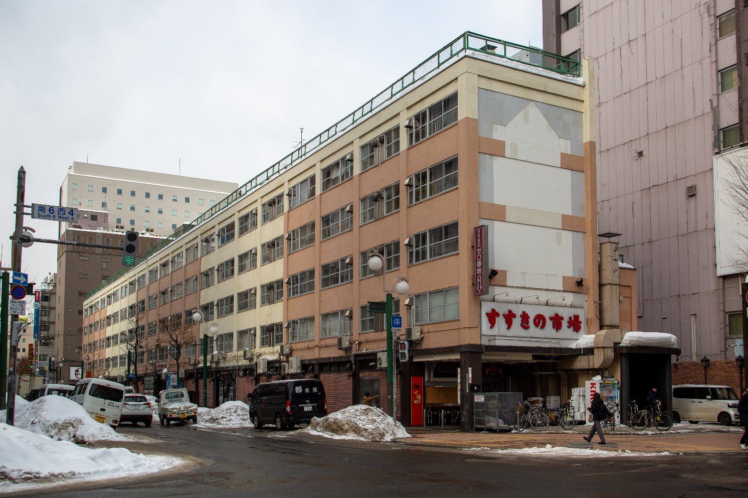 その後、地下1階・地上5階という現在の建物に建て替えられたのは、第二次世界大戦後の1958(昭和33)年。札幌市の第3セクター・札幌振興公社が当時の特殊法人・日本住宅公団と新築した道内初の“ゲタばきアパート”(※下層階に店舗などのテナント、上層階に住戸を組み合わせたアパートのこと)で、まだ平屋建ての家屋が多かった頃、2~5階の公団アパートは最先端の住まいといえた。1階フロアの「すすきの市場」は、公設時代に続いて“まちの台所”の役割を果たし、約30店舗が営業。「藤川菓子店」も小銭を握りしめた子どもたちで活気にあふれたことだろう。
